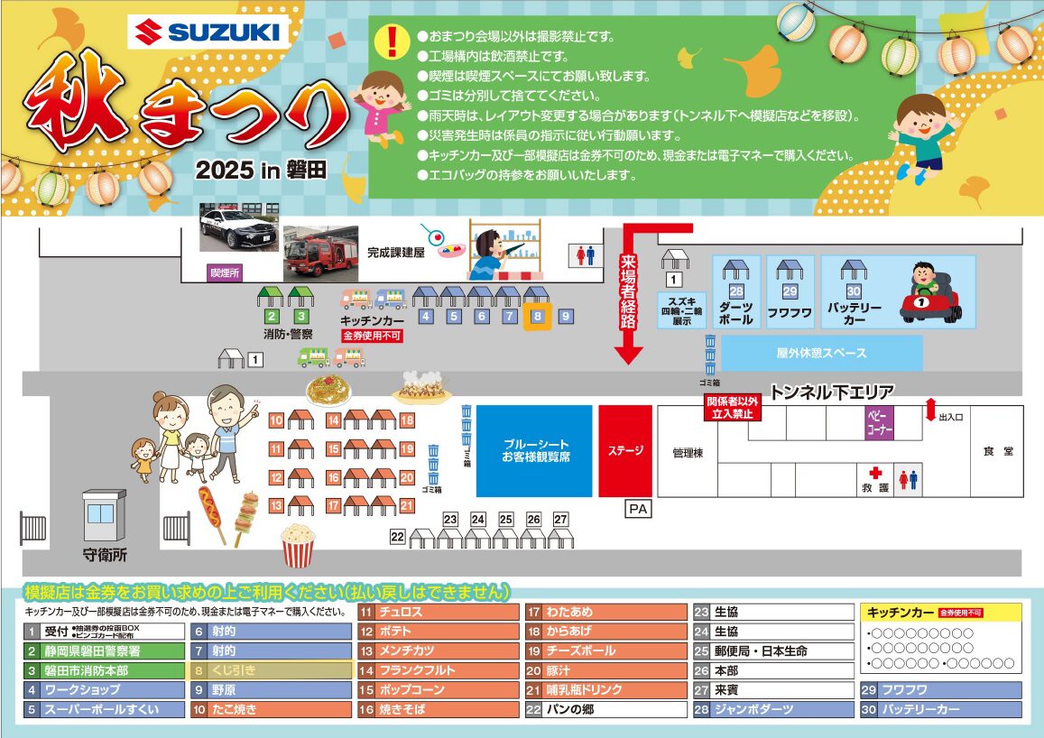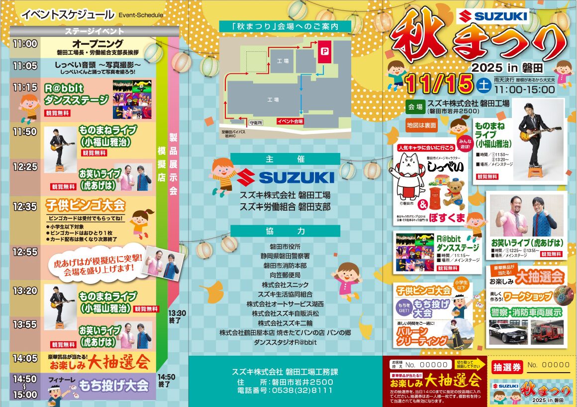 11月15日(土)スズキ株式会社磐田工場で開催される「スズキ秋まつり2025㏌磐田」に